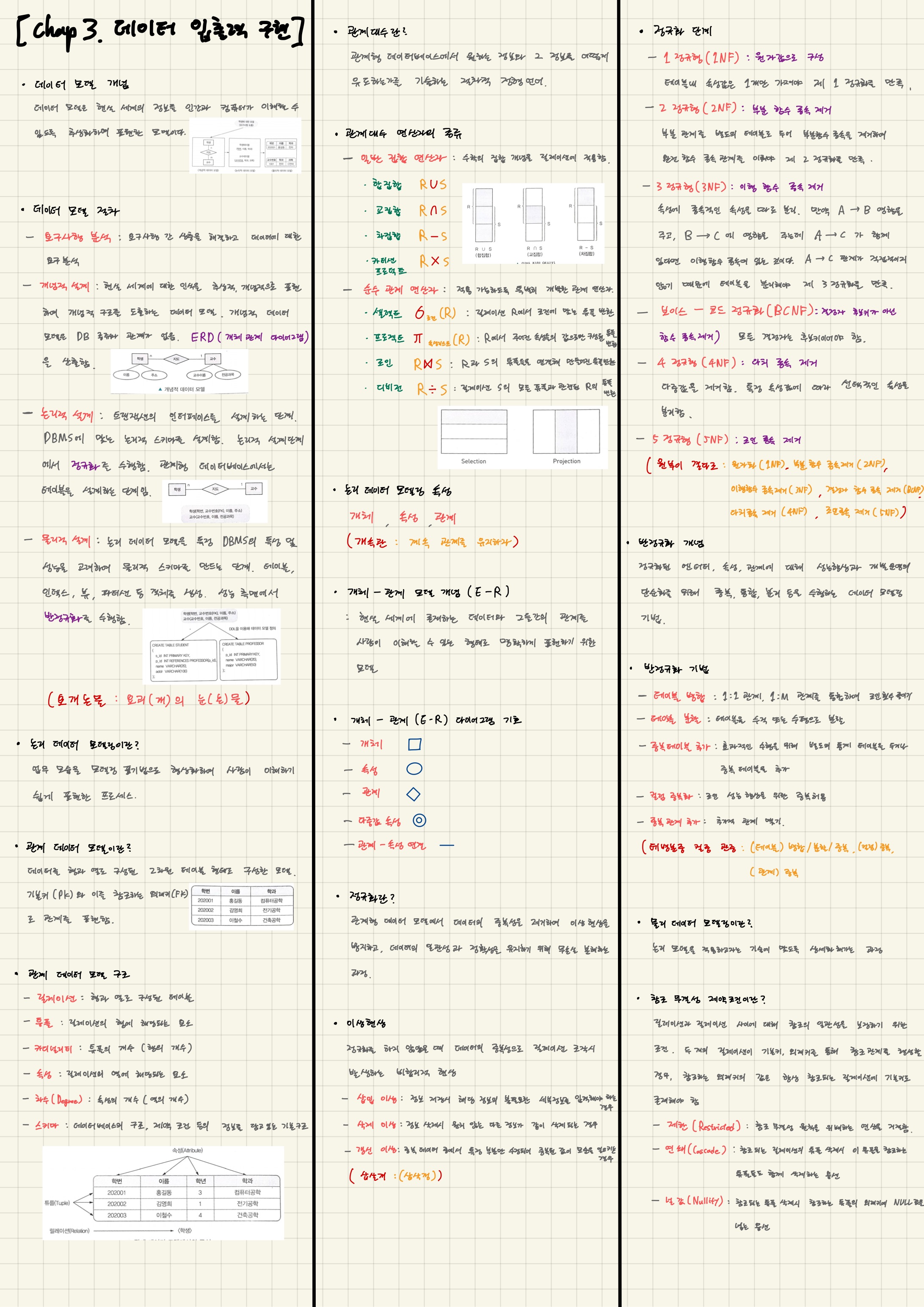 2 회독까지 완료해도 시험장에 갔을 때 원하는 키워드가 떠오르지 않을까 봐 불안했다. 그래서 3 회독까지 결심했다. 하루 6개 챕터의 복습과 더불어 두음 표기로 개념들을 따로 정리했다. 예를 들어 트랜잭션의 특성은 '원일고지(원자성 / 일관성 / 고립성 / 지속성)', UI 설계 원칙은 '직유학유(직관성 / 유연성 / 학습성 / 유효성)' 처럼 말이다. 시험 당일 시험장까지 가는 길에 복습하는 콘텐츠로도 활용할 계획이었다.