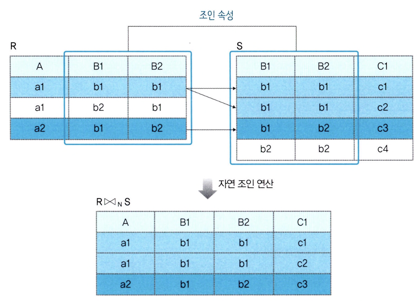 카티션 프로덕트 연산 + 셀렉트 연산(조건 : 공통된 조인 속성의 값)