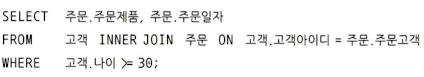 WHERE 주문고객 = 'core'); // 다중 행 부속 질의문