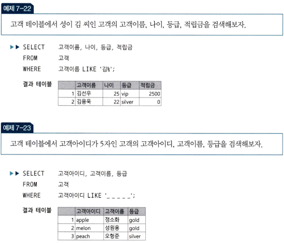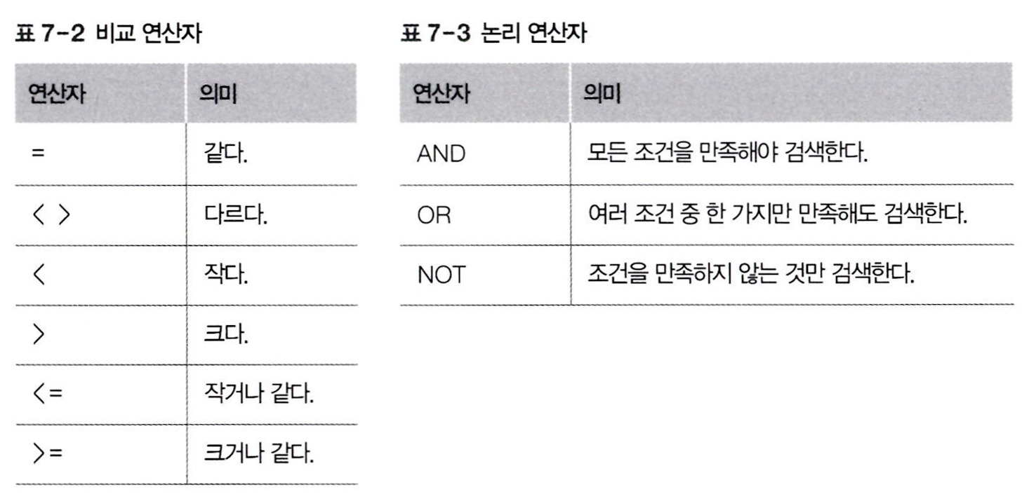 | ANY 또는 SOME | 부속 질의문의 결과 중 하나라도 비교한 결과가 참이면 검색 조건을 만족 (비교 연산자와 함께 사용) |