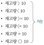 | NOT IN | 부속 질의문의 결과 값 중 일치하는 것이 없으면 검색 조건이 참 |