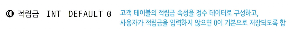 (1) 속성_이름 데이터_타입 [NOT NULL] [DEFAULT 기본_값]