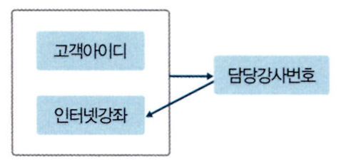 당연히 기본키인 [고객아이디, 인터넷강좌]가 담당강사번호 속성을 함수적으로 결정한다.
