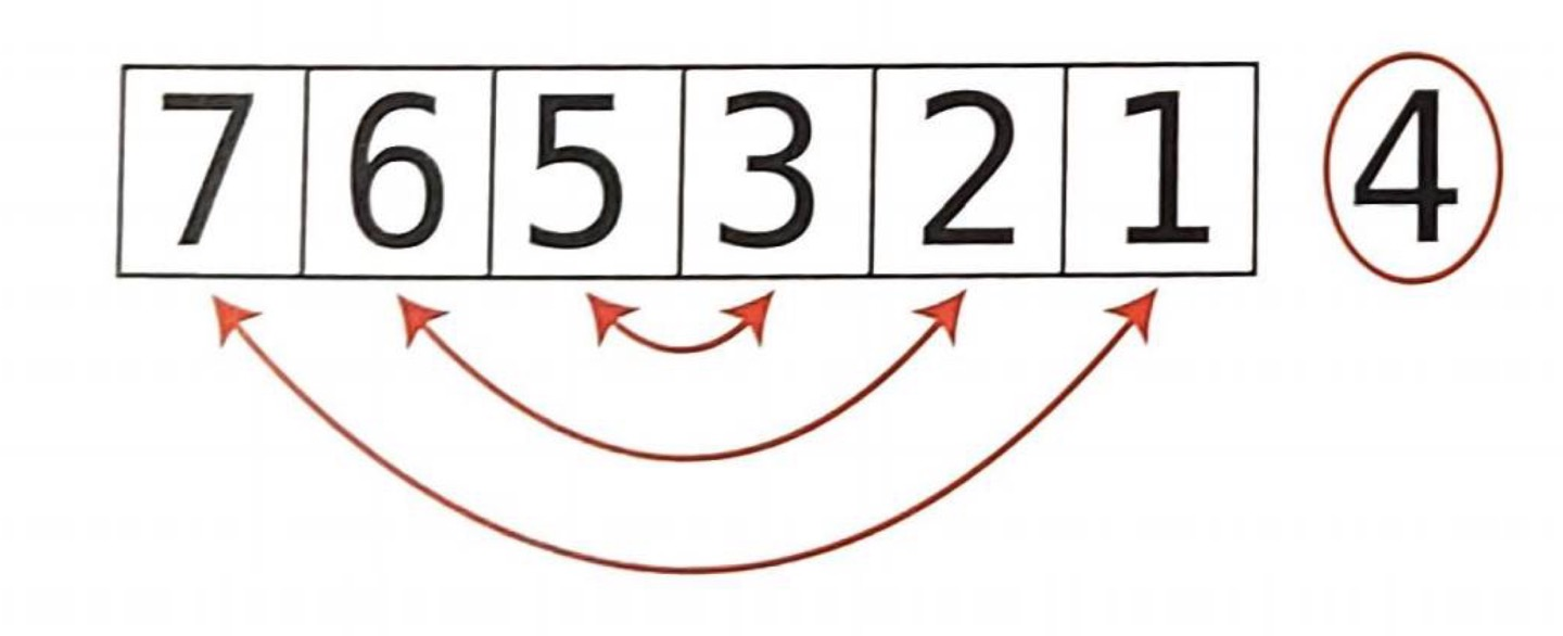 이어서 오른쪽 포인터도 한 셀씩 계속 왼쪽으로 옮기면서 피벗보다 "작거나 같은 값"에 도달하면 멈춘다. 또는 배열 맨 앞에 도달해도 멈춘다. 그렇지 않으면 왼쪽으로 이동한다.