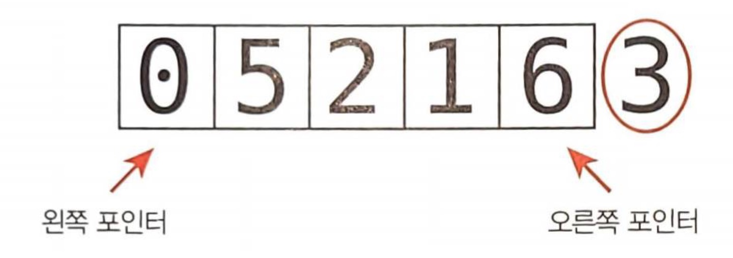 이제 왼쪽 포인터는 피벗을 가리키게 된다.