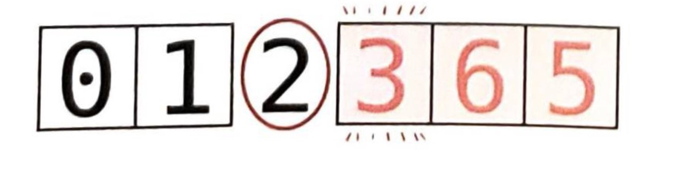 하위 배열 [0, 1, 2] 중에서 가장 오른쪽 원소를 피벗으로 삼겠다. 즉, 숫자 2다.