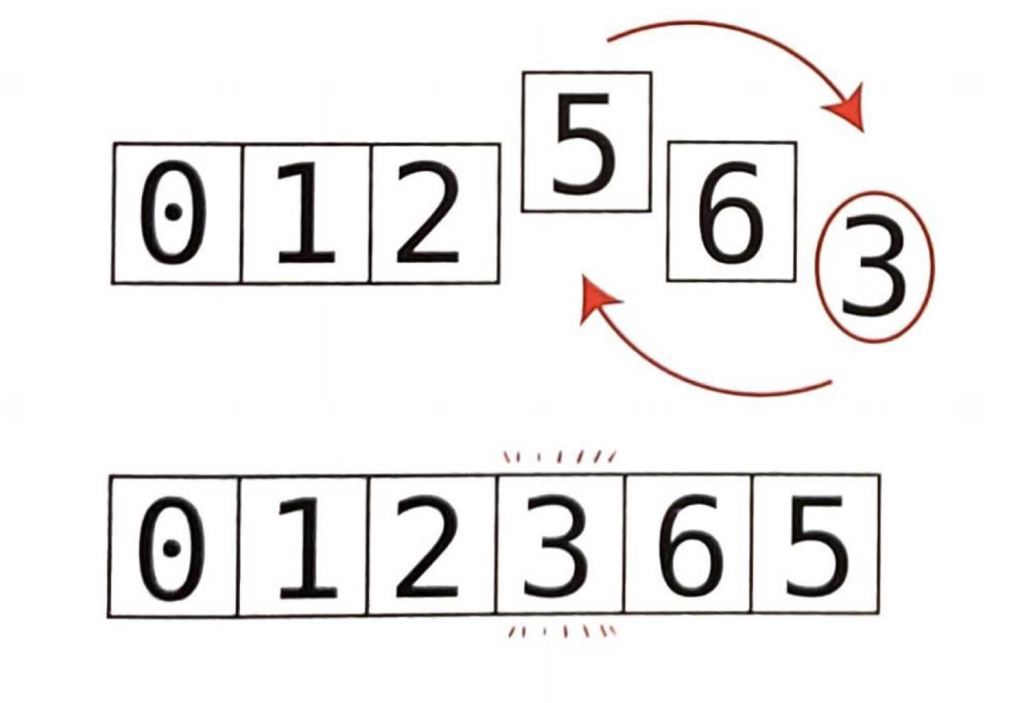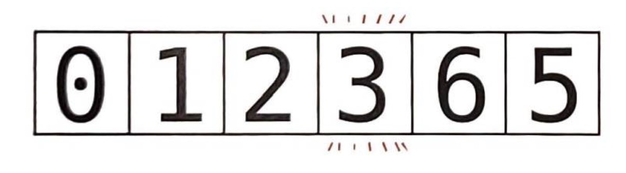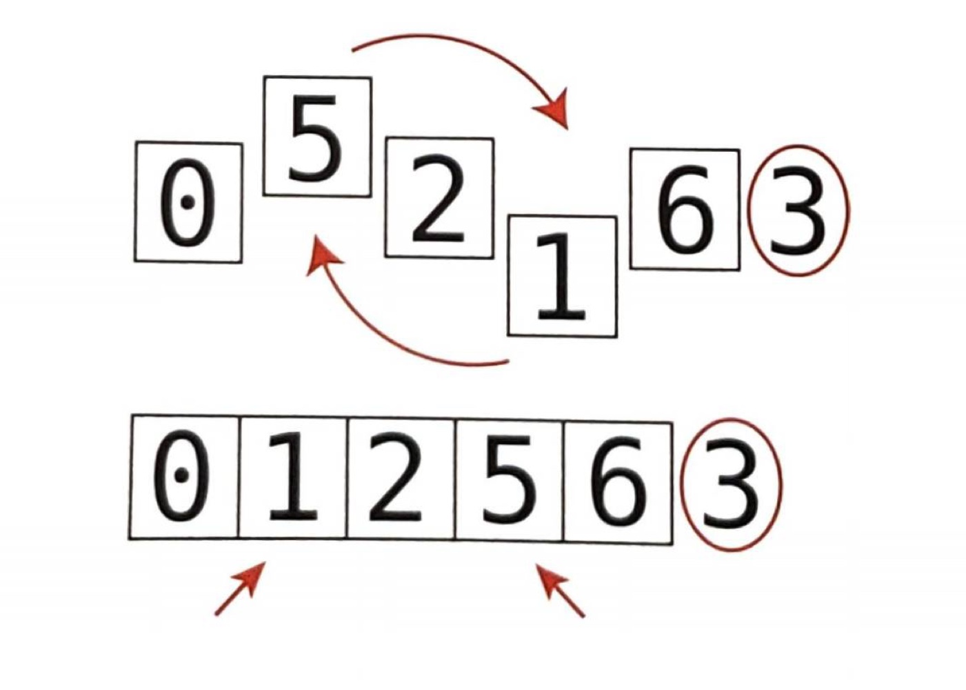 아래 그림처럼 원소 6개를 3번의 교환으로 분할한다.