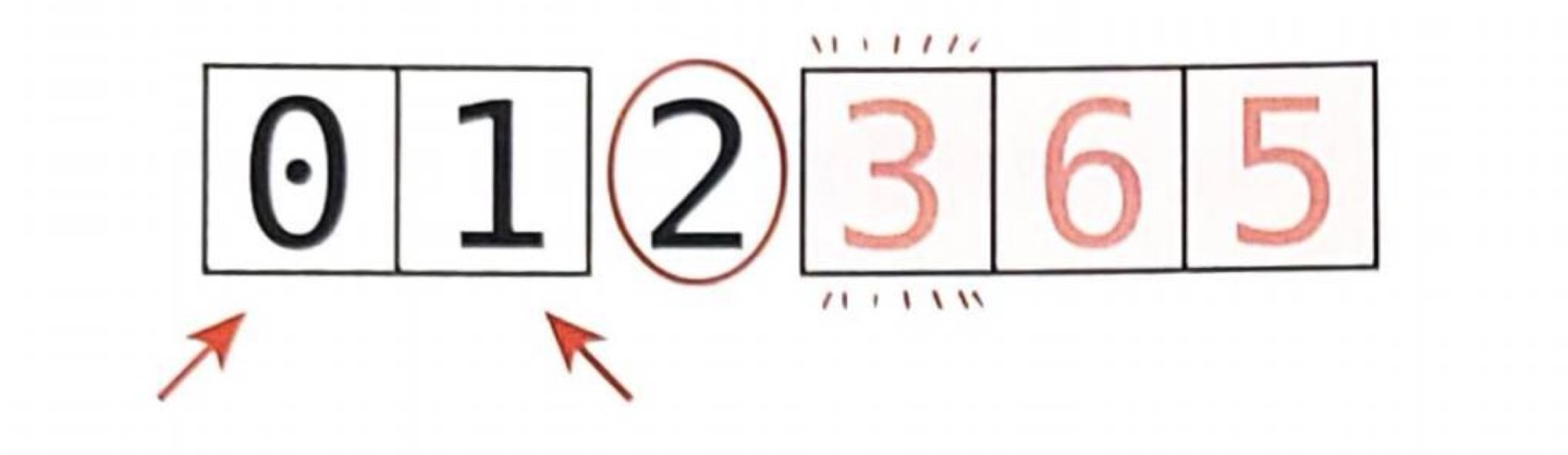 두 포인터가 모두 멈췄으니 두 포인터의 값을 교환한다.