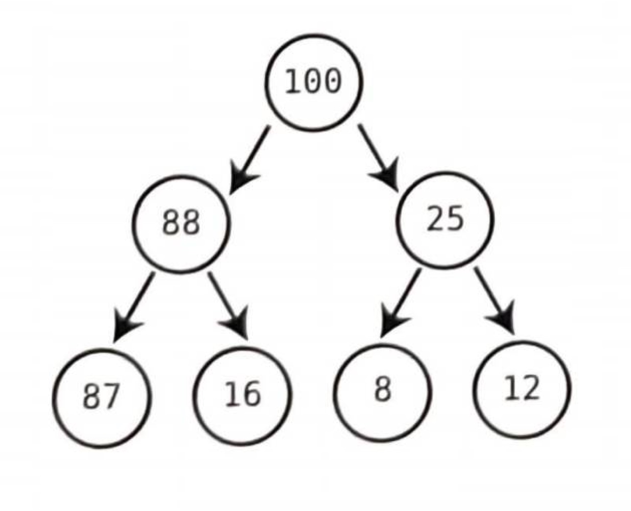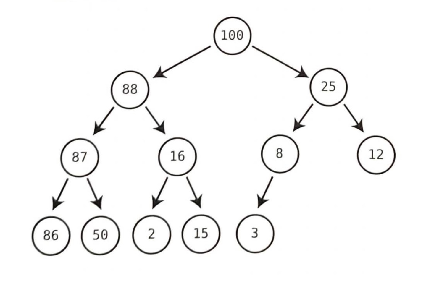 예를 들어 다음 트리에서 각 노드는 그 자손보다 크므로 힙 조건을 만족한다.
