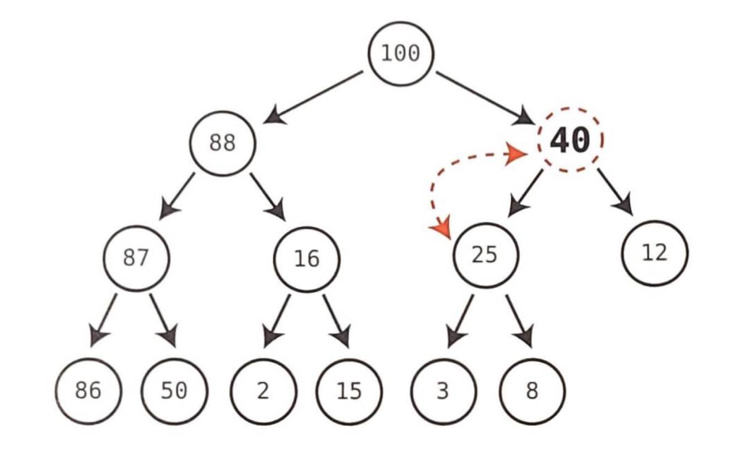 - 부모 노드가 두 자식 노드 중 큰 노드보다 작으면 그 큰 노드와 스왑한다.