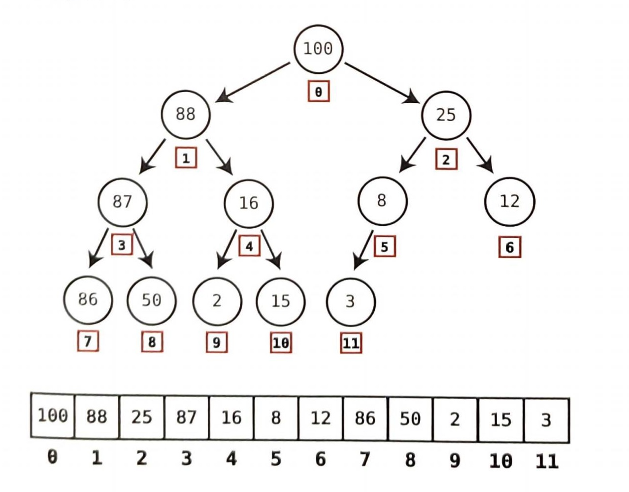 배열로도 힙을 구현할 수 있다. 즉 힙 자체가 내부적으로 배열을 사용하는 추상 데이터 타입일 수 있다.