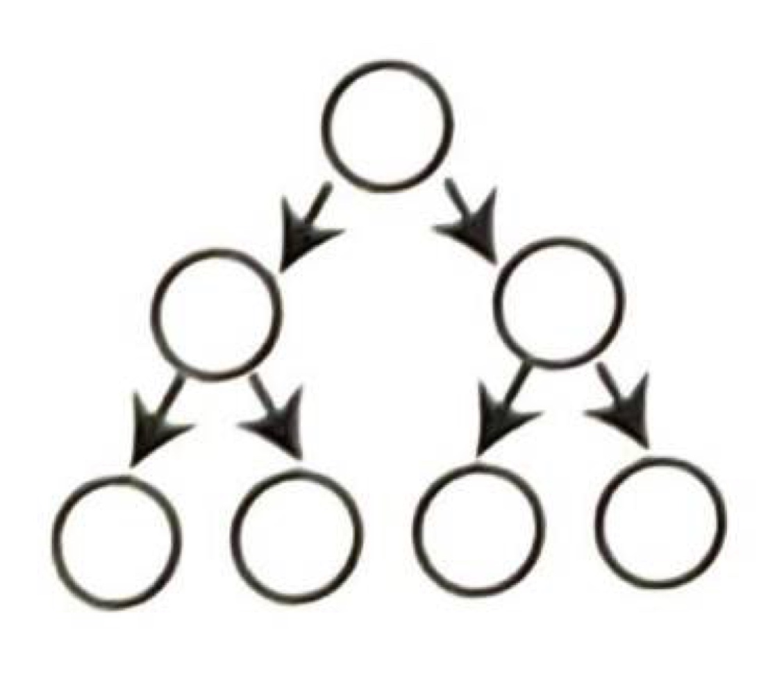 "트리가 완전해야 한다"는 두 번째 힙 규칙인 '완전 트리(complete tree)' 조건은 빠진 노드 없이 노드가 완전히 채워진 트리다. 따라서 트리의 각 레벨을 왼쪽부터 오른쪽으로 읽었을 때 모든 자리마다 노드가 있어야 한다.