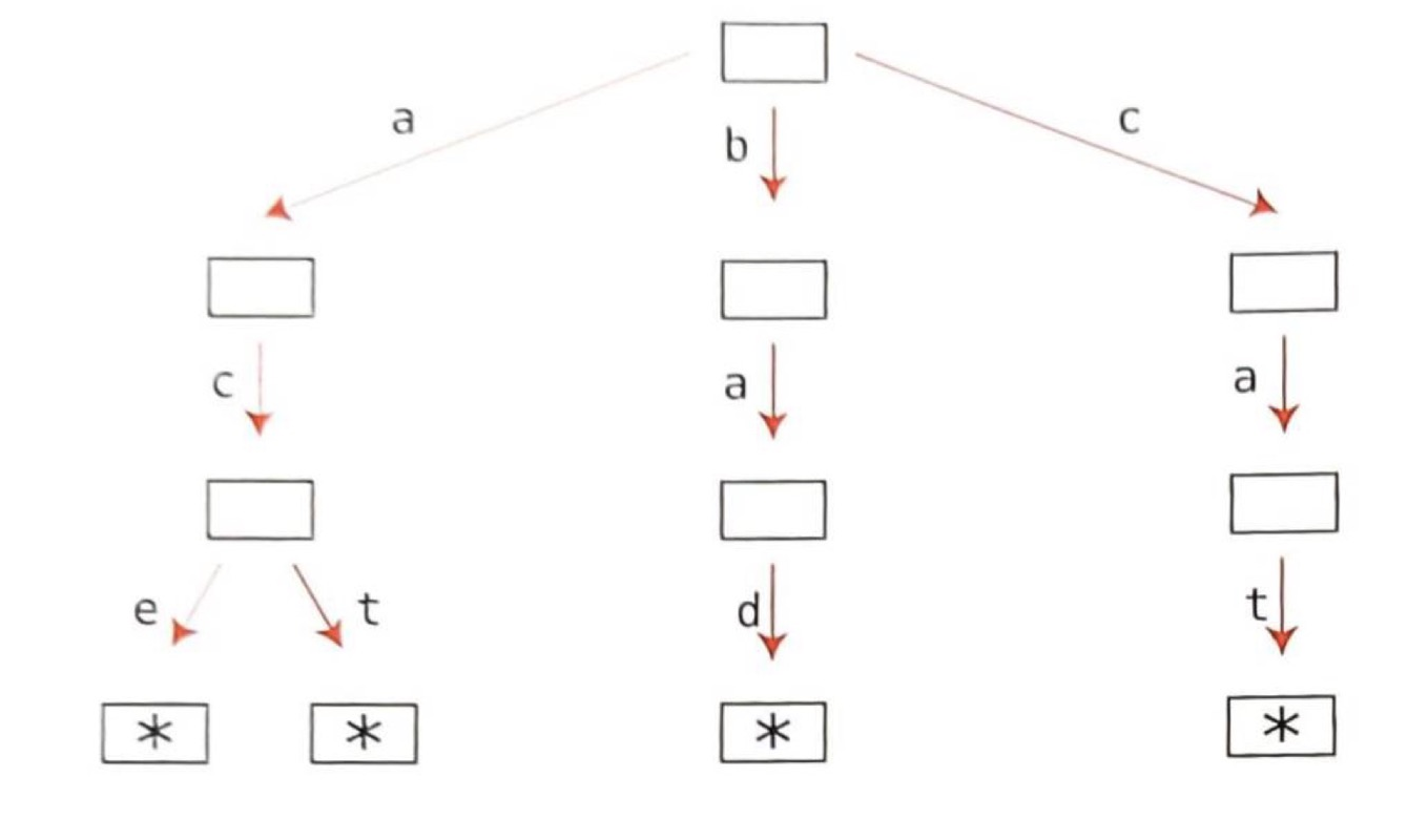 만약 "act"란 새로운 단어를 추가하고 싶다. 이미 존재하는 기존 키 "a", "c"는 그대로 두고 키 "t"를 포함하는 새 노드를 추가한다.