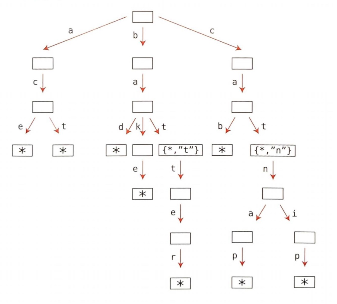 키가 ' * '인 해시 테이블은 값으로 null을 넣는다. 이는 단어의 끝을 나타낸다.